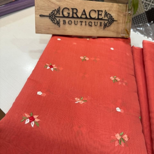 FEMC3 - Mul Chanderi Embroidered (Orange)