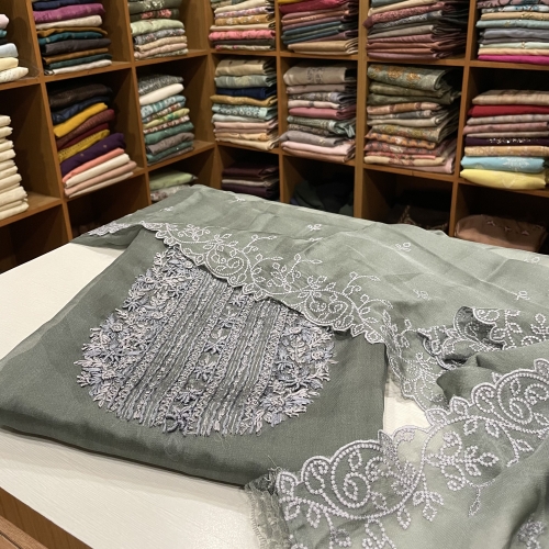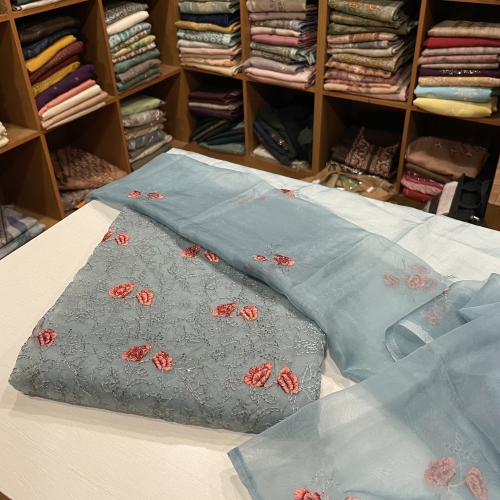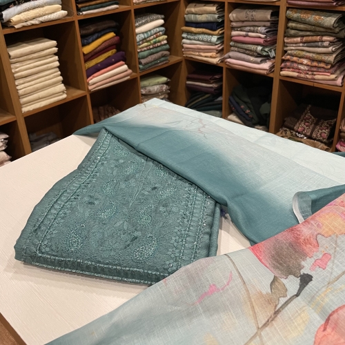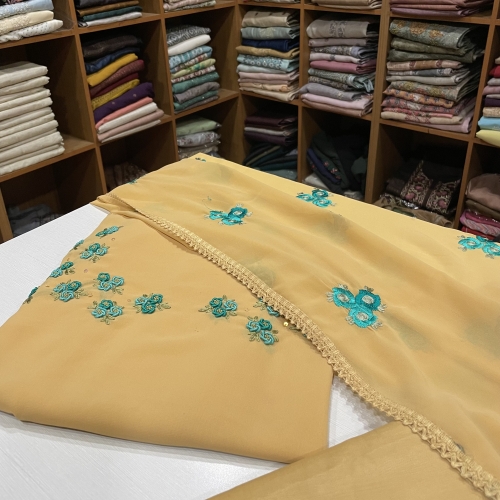 *MUL CHANDERI MATERIAL *BUTTERCREPE LINING *HANDWORK ON YOKE AND SLEEVE *YOKE COTTON LINING LENGTH UP TO 50" CHEST UP TO 42"