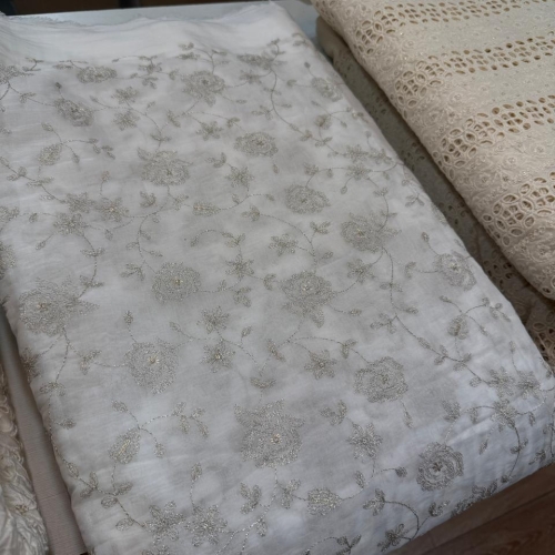 FECH2 - Floral Embroidered Mul Chanderi Dyeable