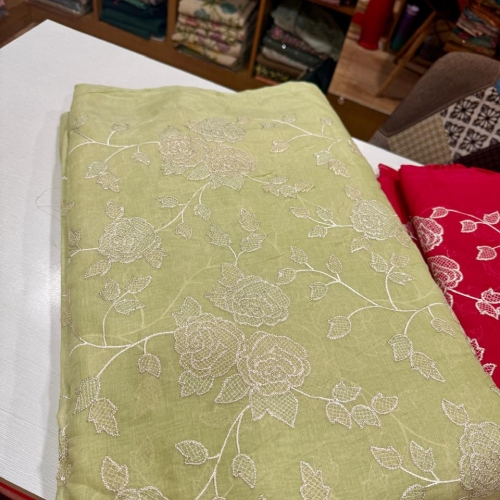 FECH2 - Floral Embroidered Mul Chanderi (PASTEL GREEN)