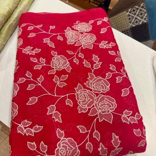 FECH2 - Floral Embroidered Mul Chanderi (RED)