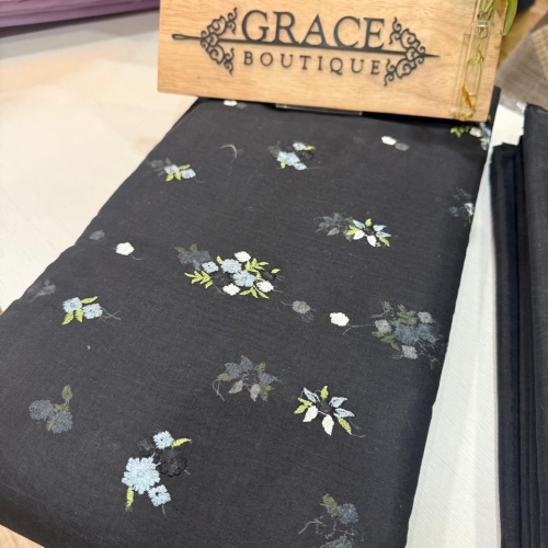FEMC3 - Mul Chanderi Embroidered (Black)