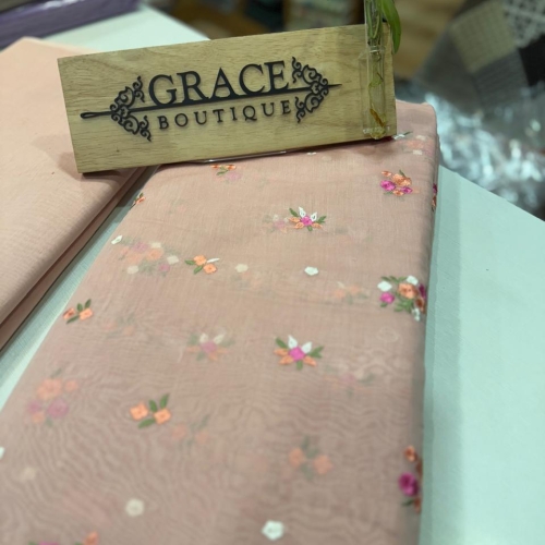 FEMC3 - Mul Chanderi Embroidered (Peach Nude)