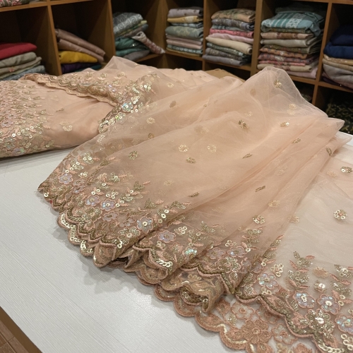 FAB170 Embroidered Net With Scallop Borders