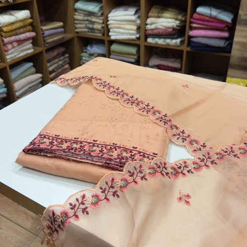 Sale20 Embroidered Organza Top , Shantoon Bottom. & Organza Dupatta