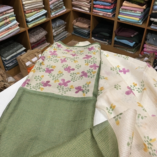 DYEABLE BLUE AND PEACH RATE-665/-(WEBSITE SEARCHCODE : FEMC1) 1ST -DESIGN FROCK 4YRS-4400(23INCH LENGTH) 2 ND DESIGN PLEATED KURTHI WITH PEARLS-4800 3RD DESIGN HANDWORK KURTHI-6500 DYENG CHARGE-100/- PER MTR DM@GRACE FABRIC AND LACES FOR C USTOMISATION AND DYEING
