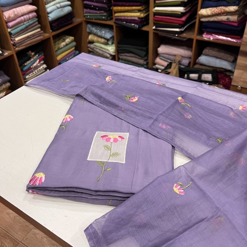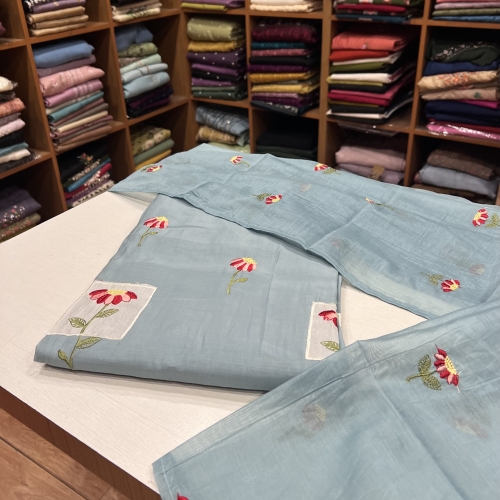 EST26 Semi Chanderi Patch Worked Top , Shantoon Bottom & Chanderi Dupatta - Copy