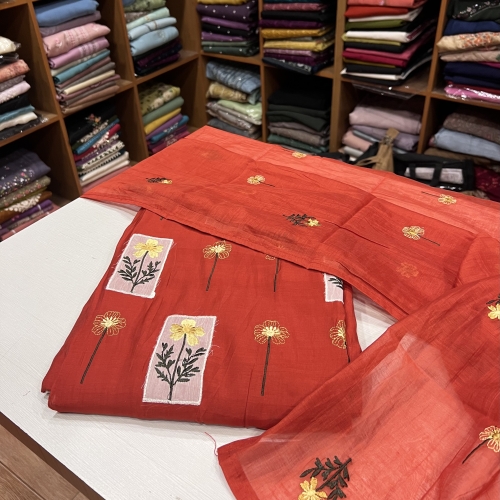 EST26 Semi Chanderi Patch Worked Top , Shantoon Bottom & Chanderi Dupatta - Copy 9