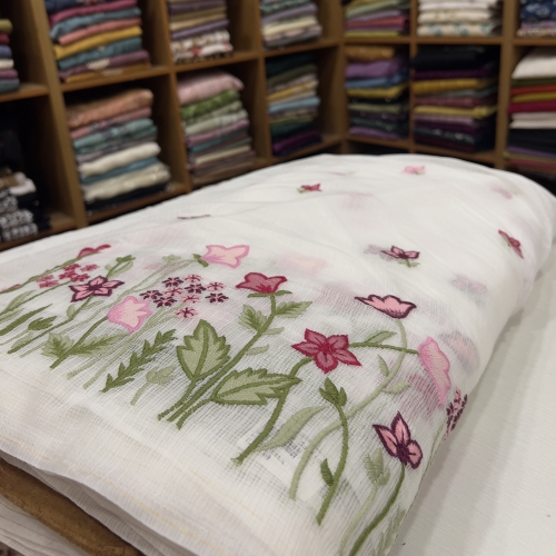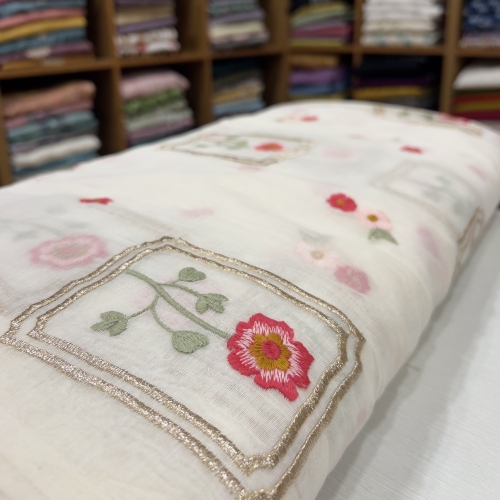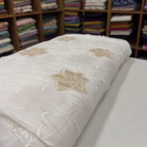 Colour -white Fabric width-44 Work width-38 All over embroidered