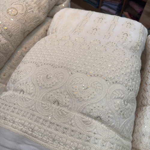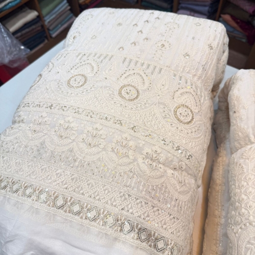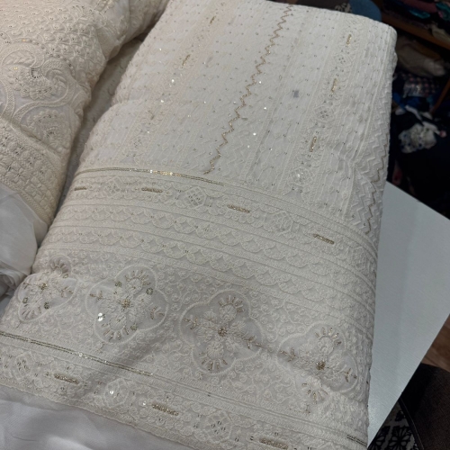 FECF1 - Embroidered Chikenkari Fabric (Offwhite)