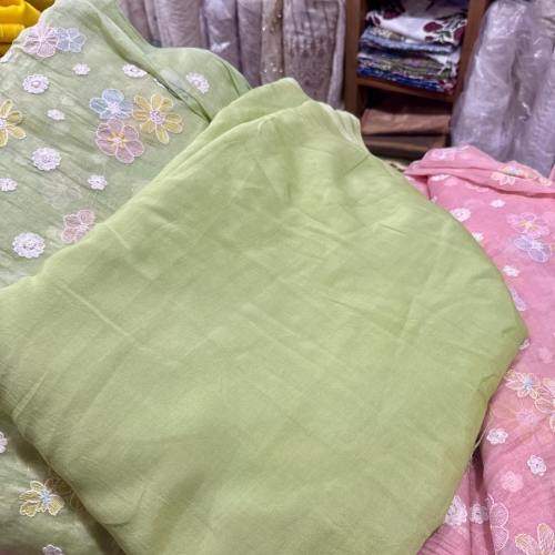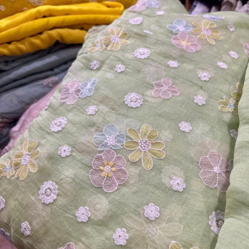 FPMC Embroidered Mul Chanderi (Pastel Green)