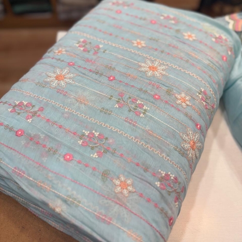 FEMC2 - Embroidered Mul Chanderi (Top Fabric)Blue Blush