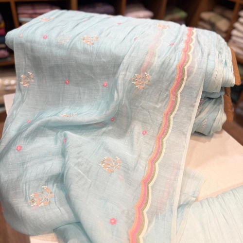 FEMC2 - Embroidered Mul Chanderi (dupatta Fabric)blue Blush