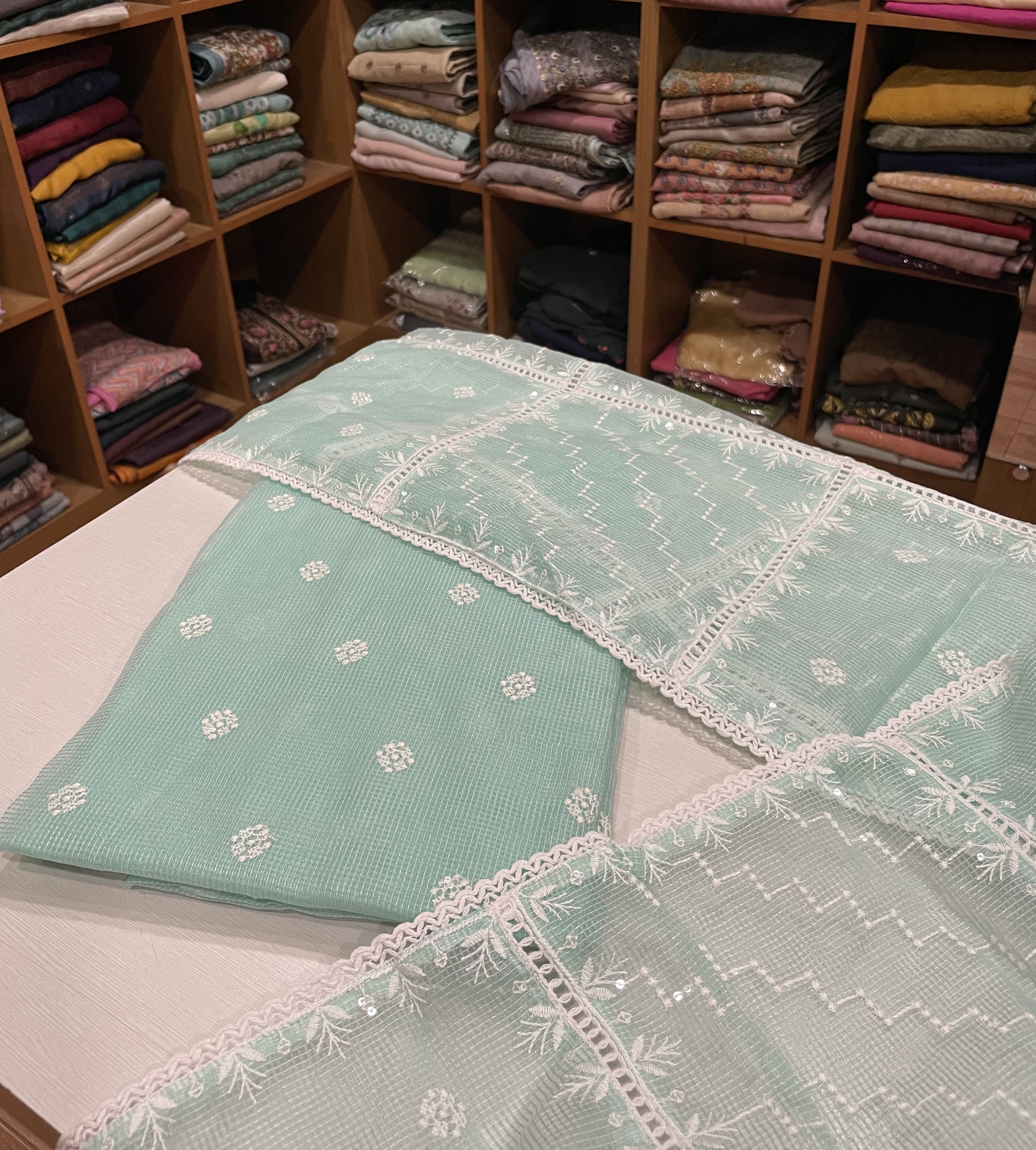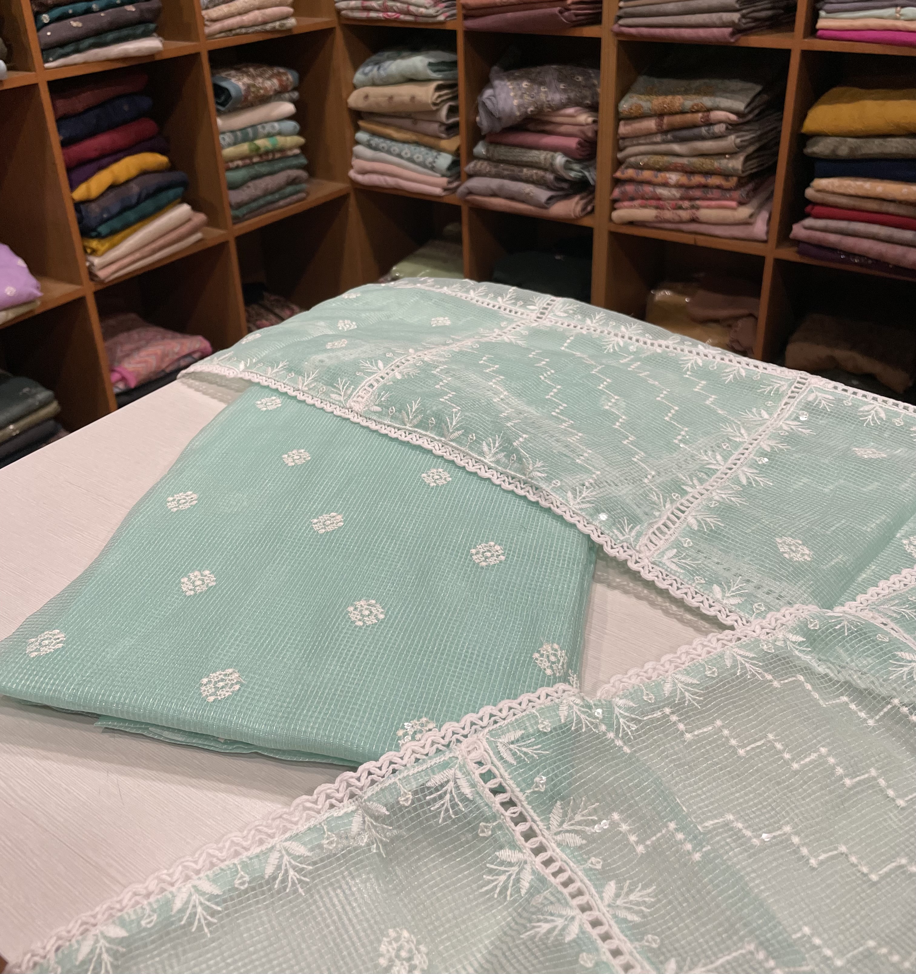 CH101 Moonga Kotta Top , Cotton Bottom & Moonga Kotta Embroidered Dupatta