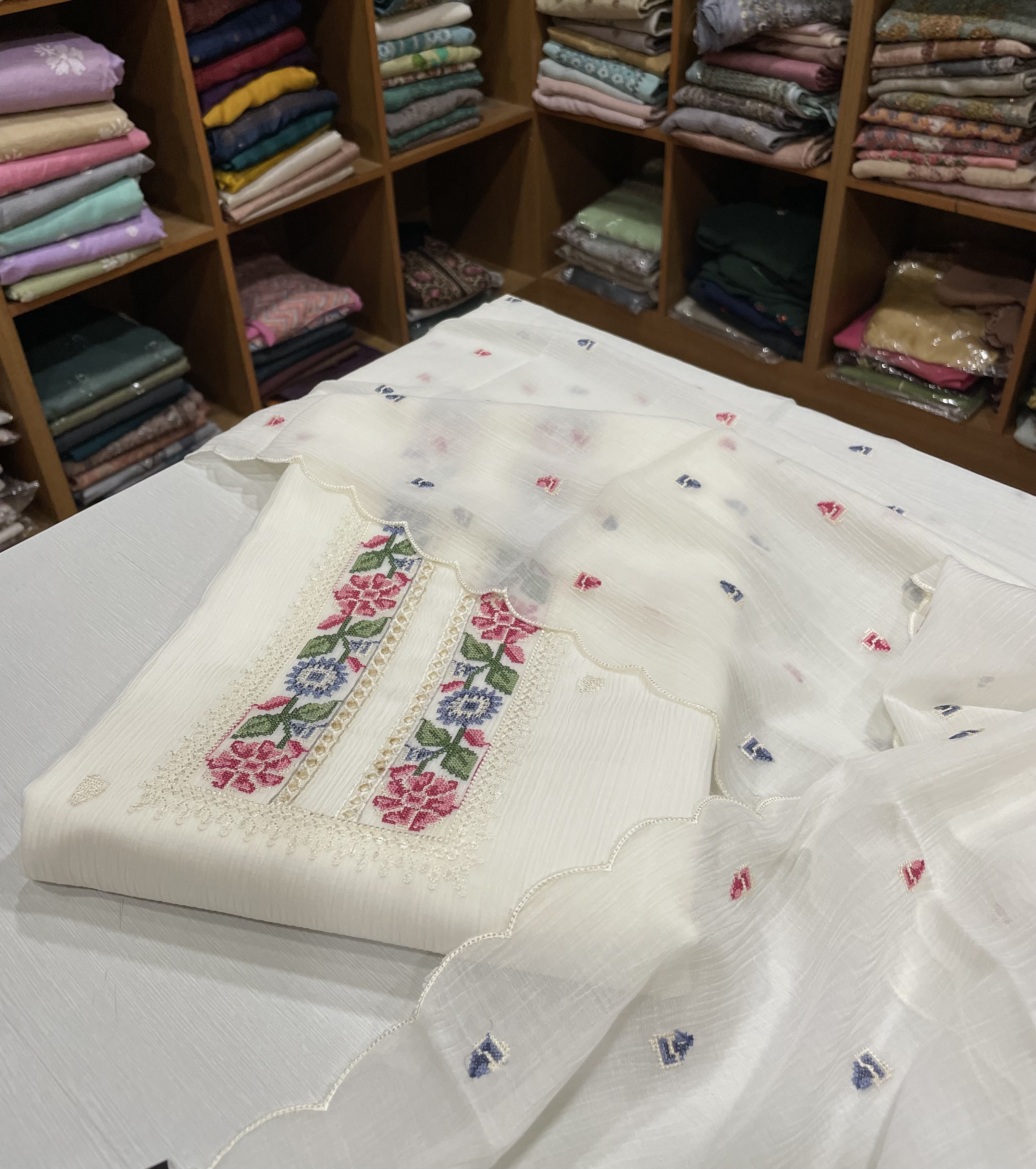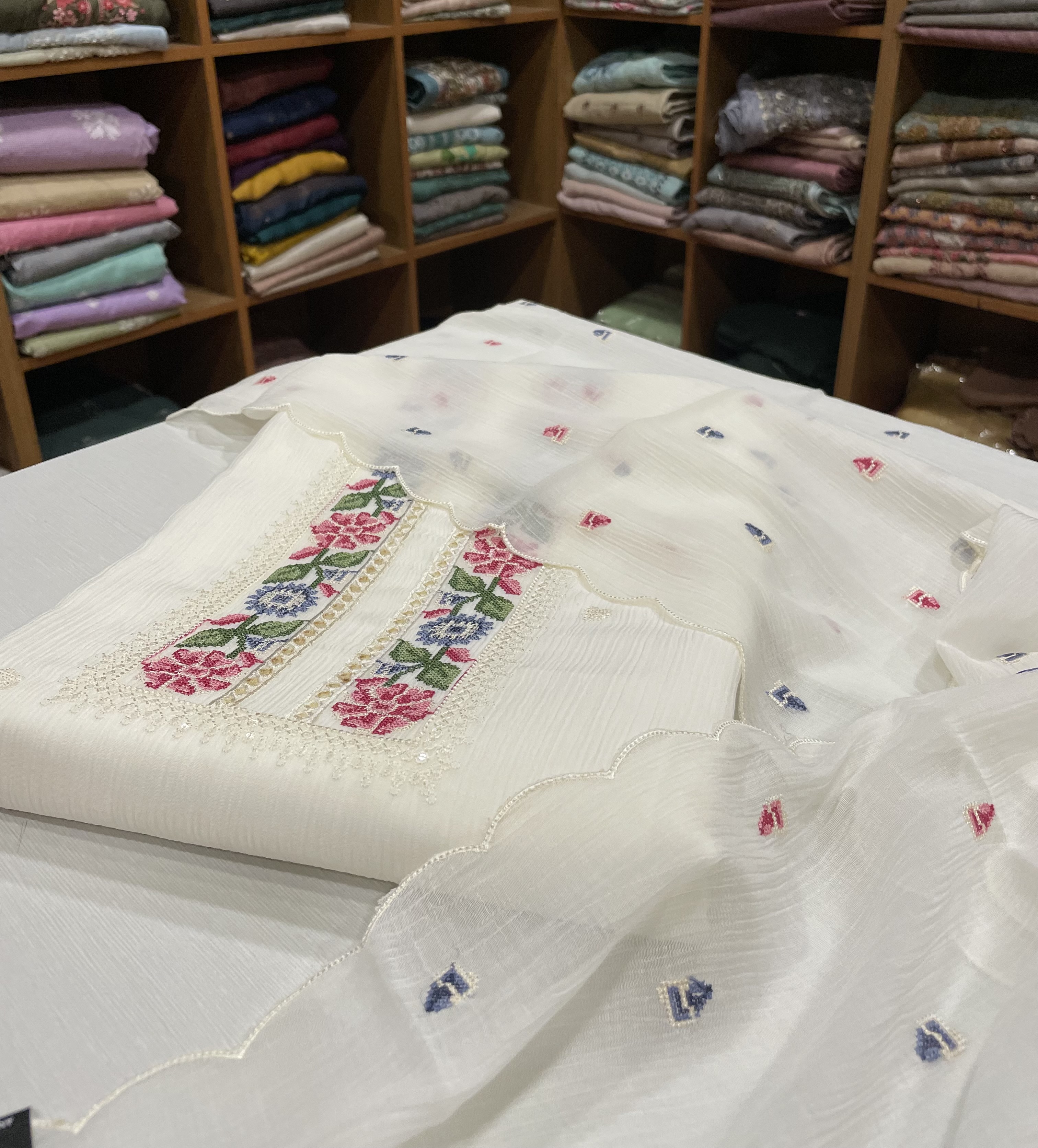 CH98 Offwhite Chiffon Top , Shantoon Bottom & Chiffon Dupatta