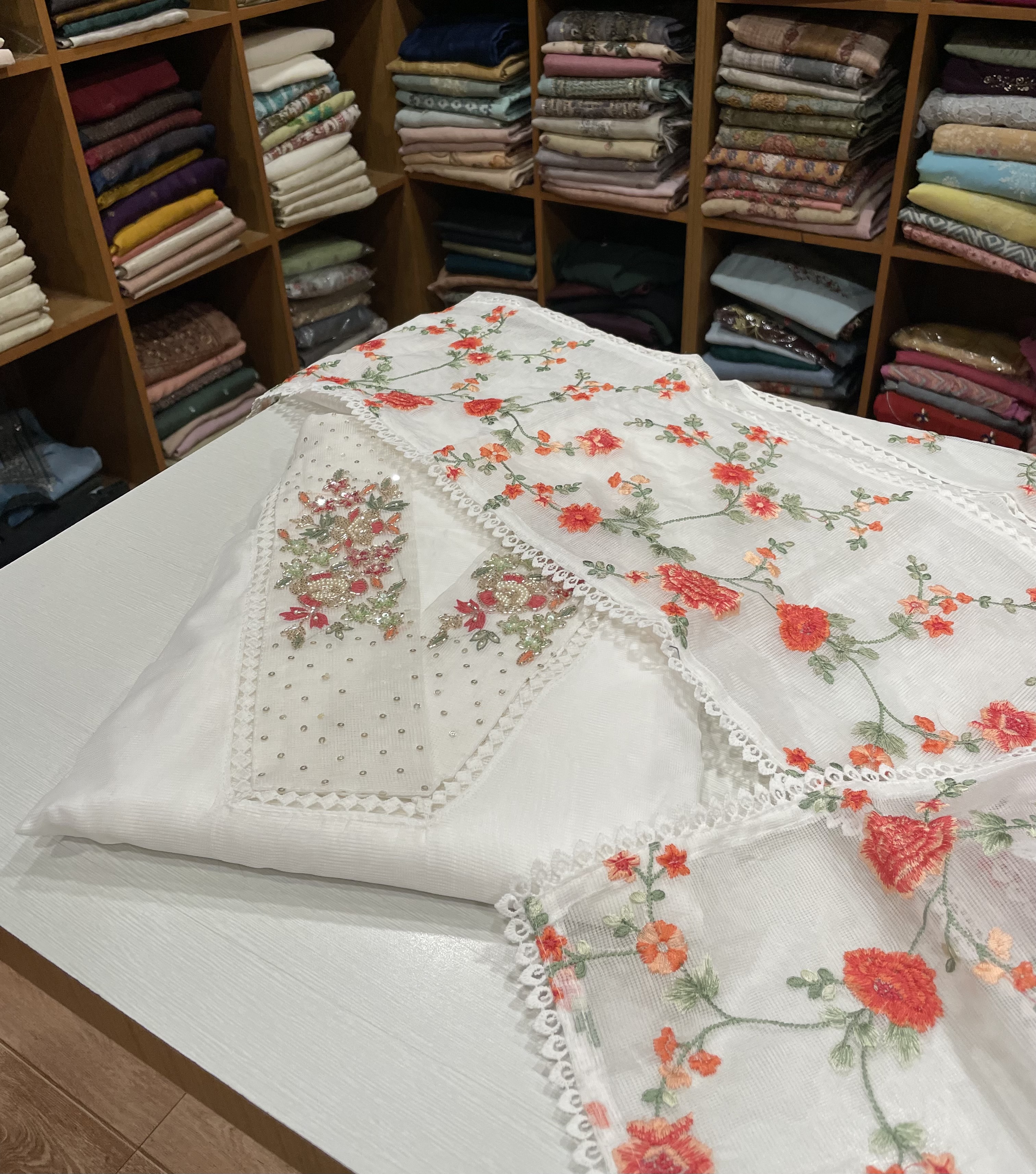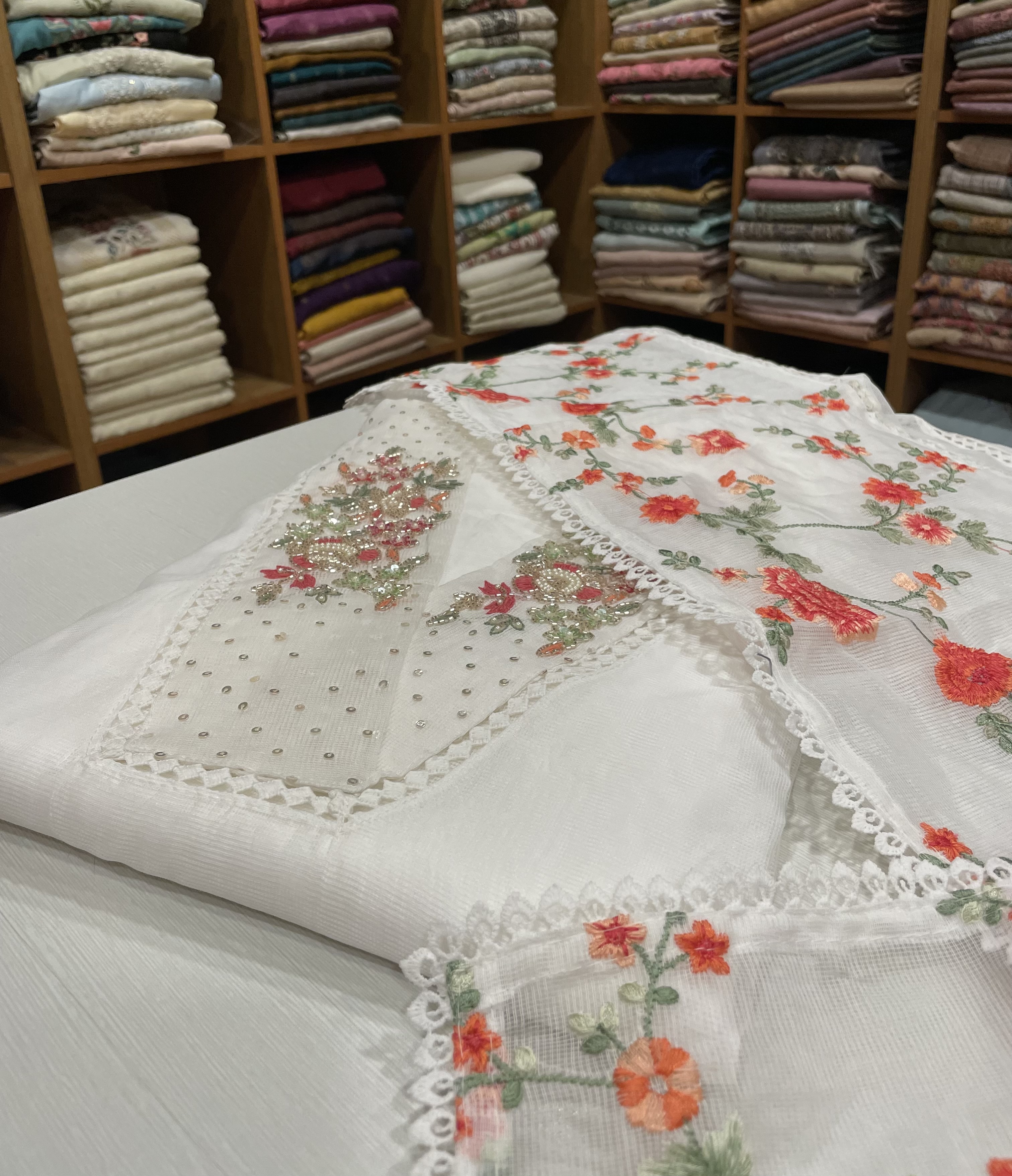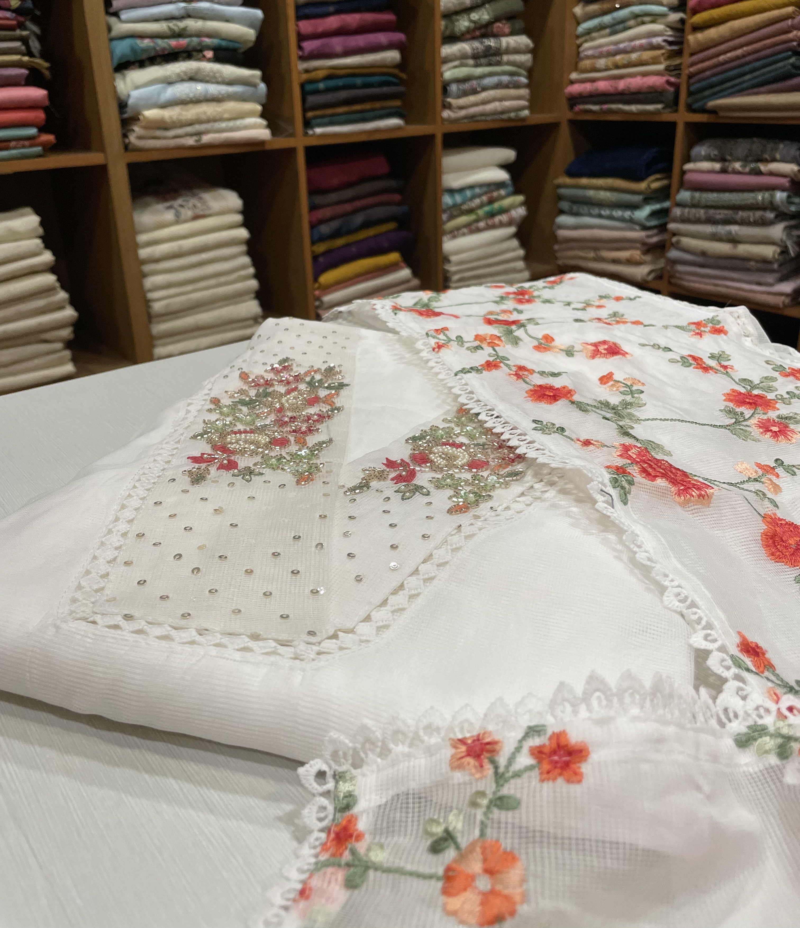 CH91 White Kotta Top , Cotton White Bottom & Kotta Embroidered Dupatta