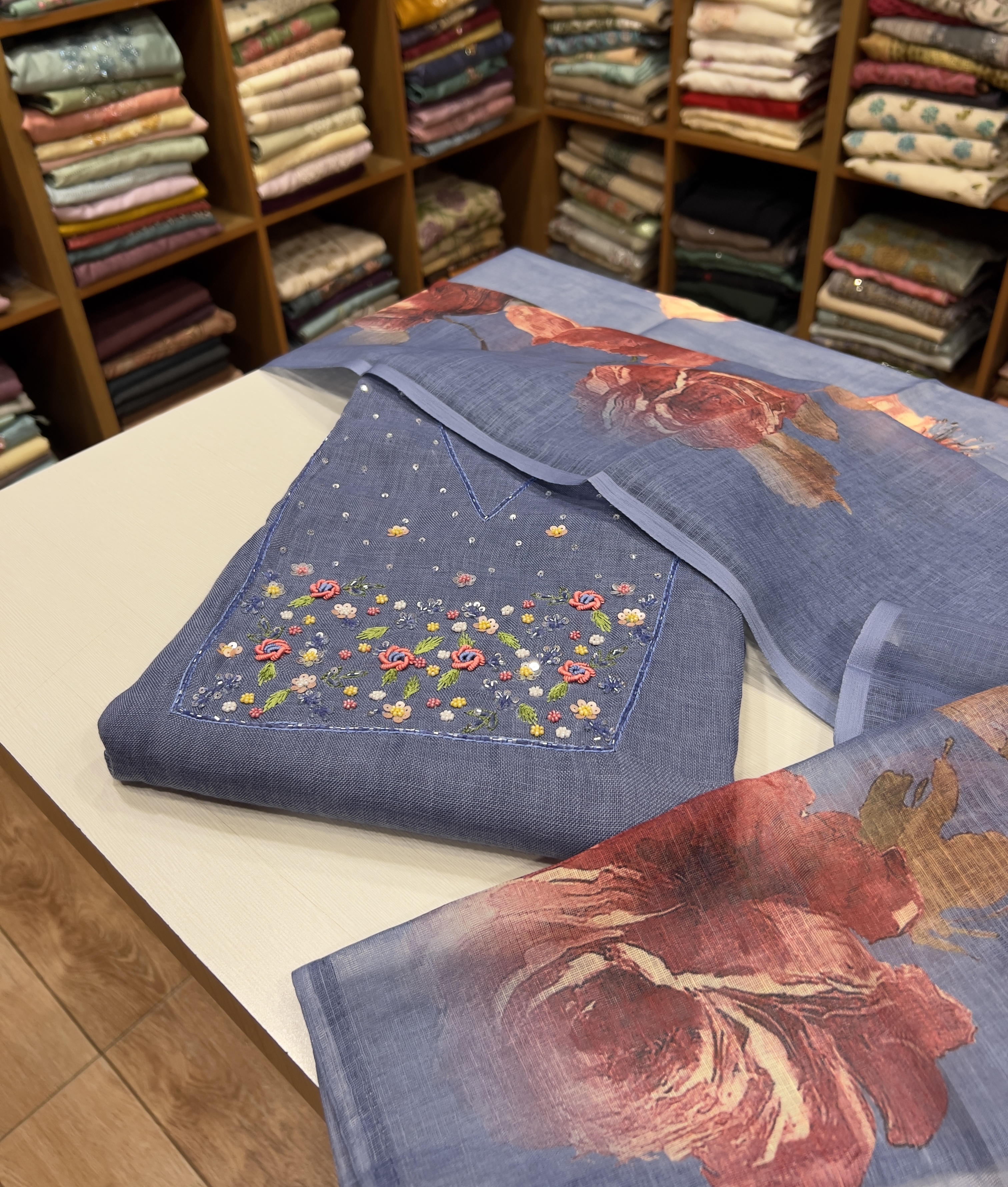 CHU19 Linen Top , Shantoon Bottom & Semi Linen Dupatta