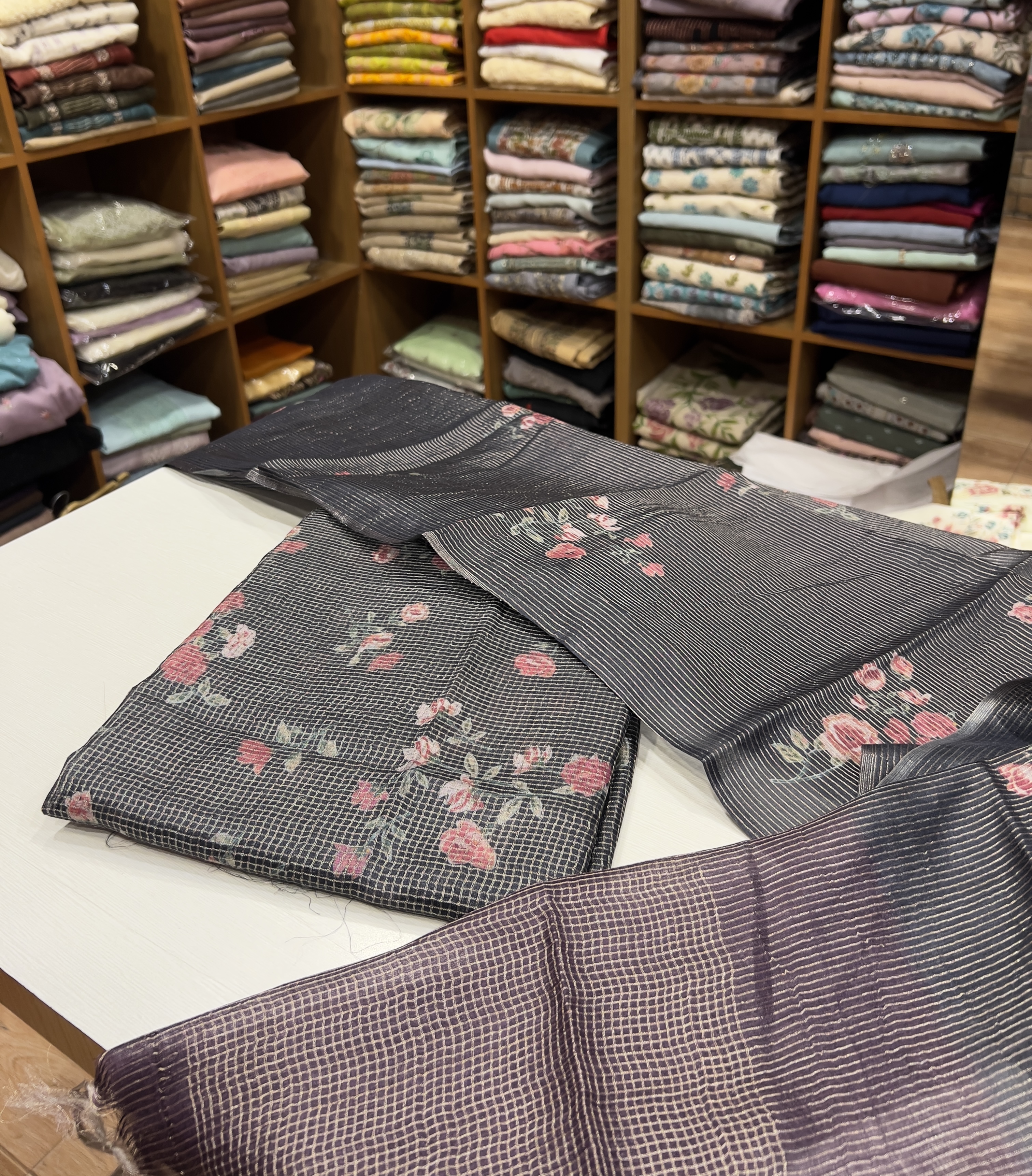CHU2 Tussar Silk Top , Black Cotton Silk Bottom & Tussar Silk Dupatta