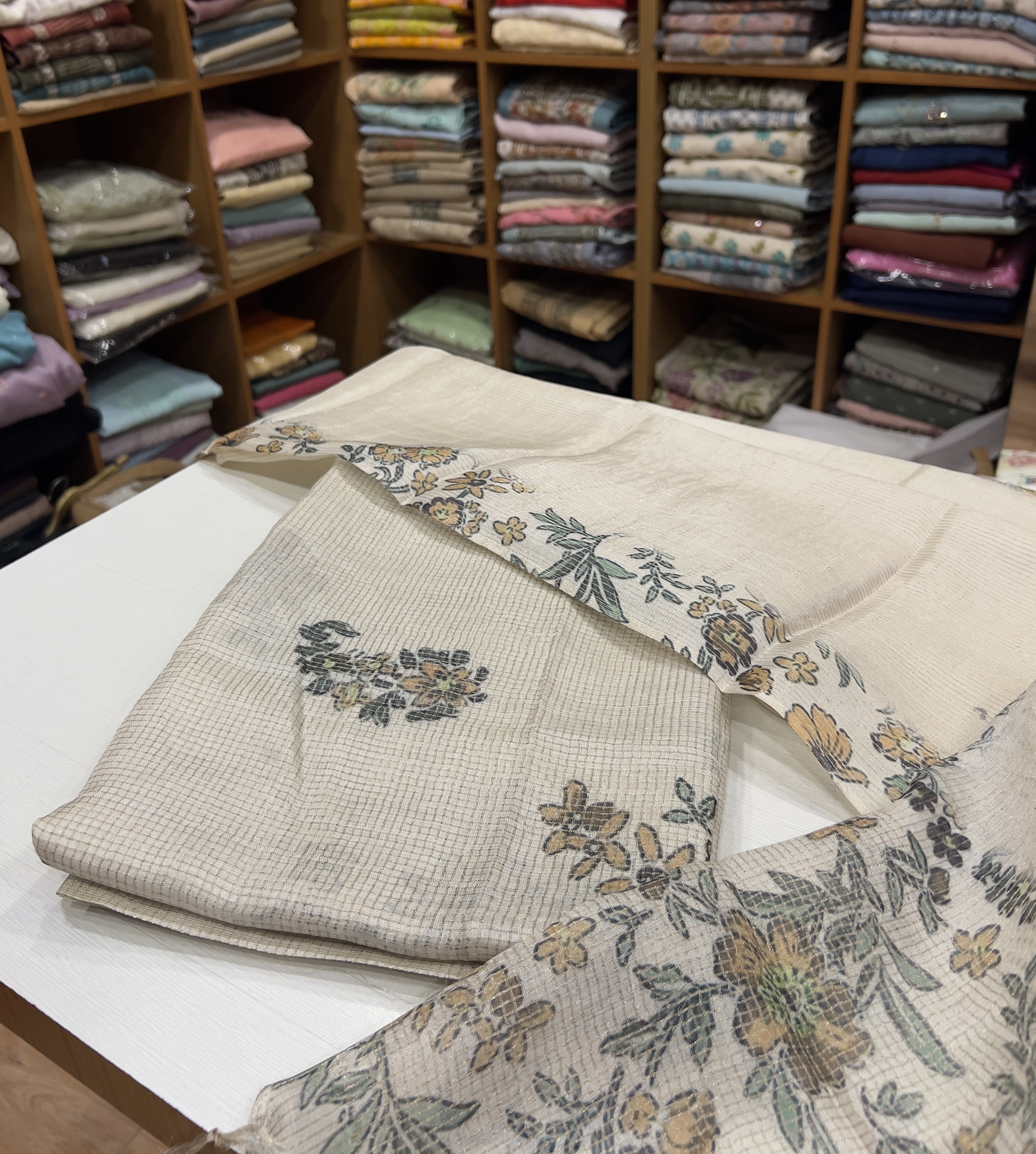CHU2 Tussar Silk Top , Offwhite Cotton Silk Bottom & Tussar Silk Dupatta