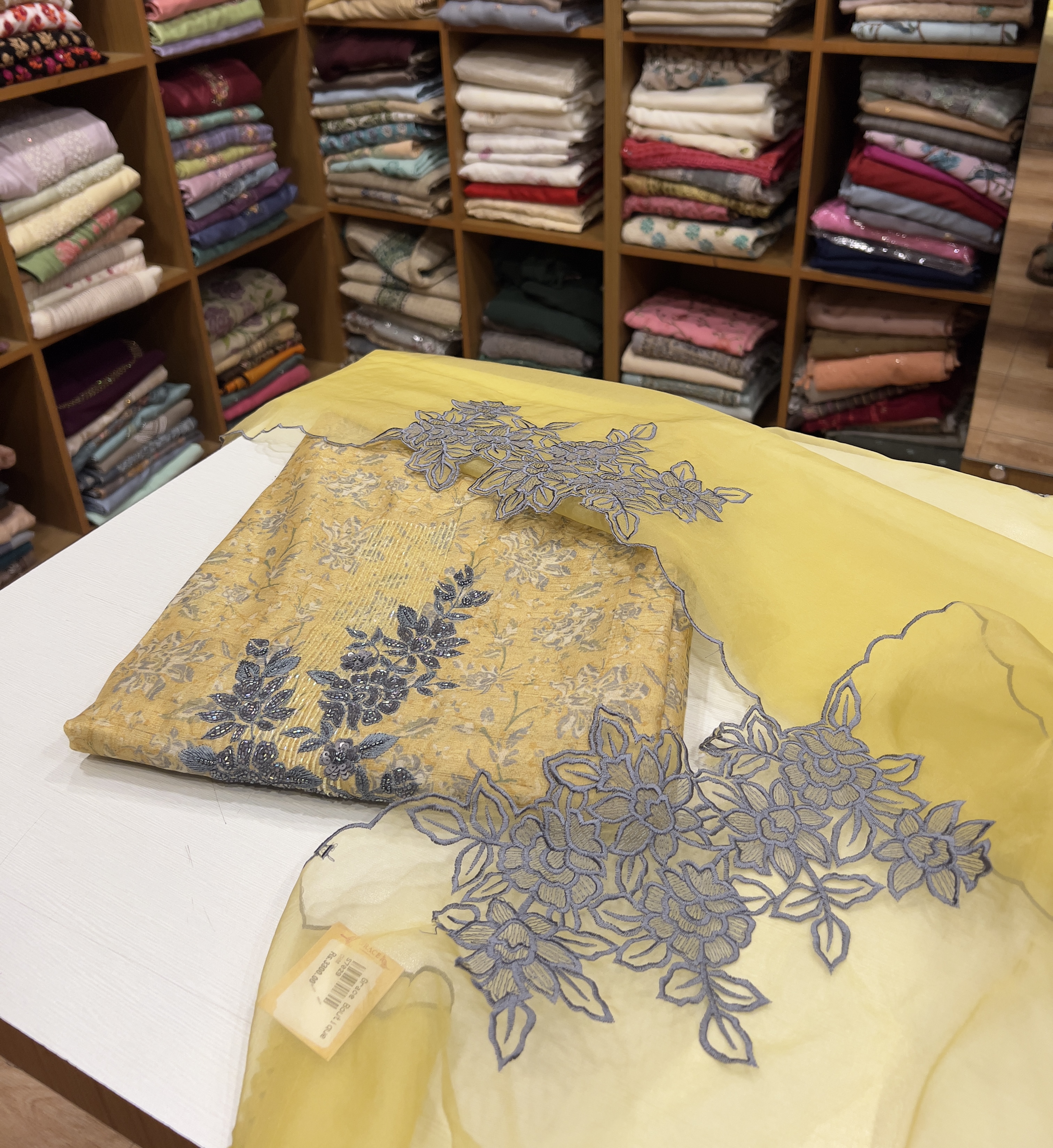 CHU26 Semi Silk Top , Shantoon Bottom & Organza Embroidered Dupatta