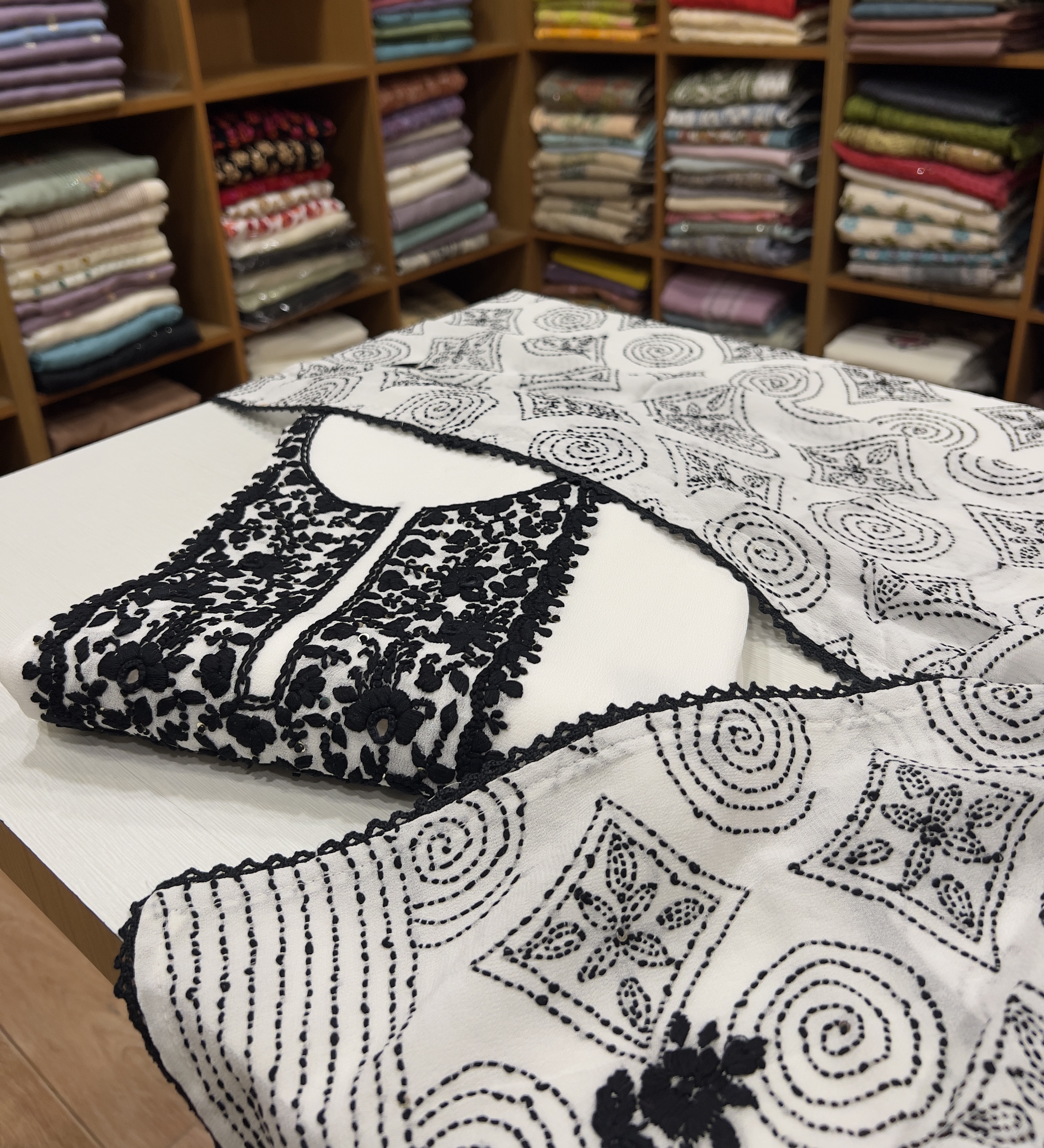 CHU3 Georgette Top With Embroidery, Same Color Shantoon Bottom & Georgette Embroidered Dupatta