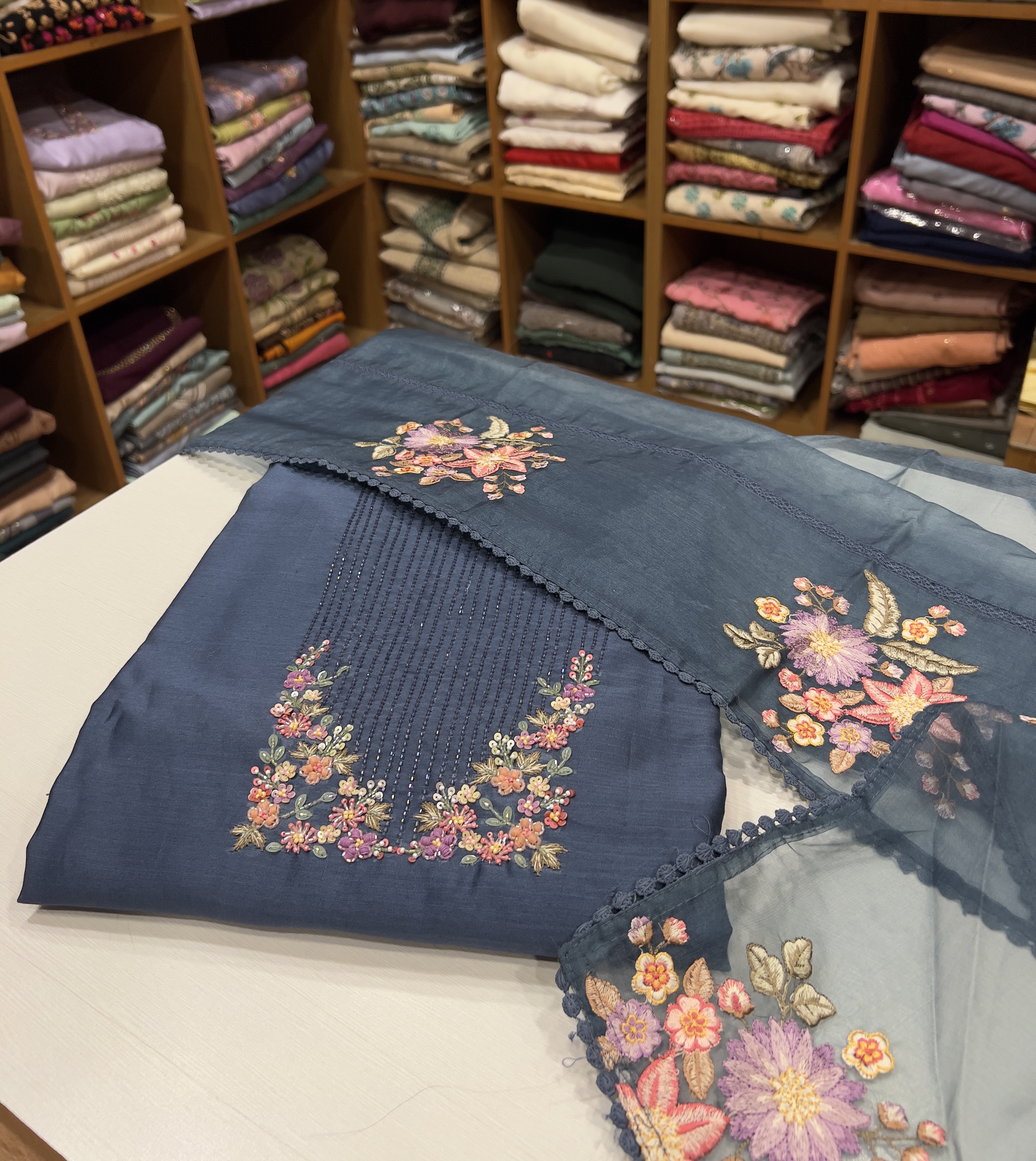 CHU33 Chanderi Top , Shantoon Bottom & Organza Dupatta