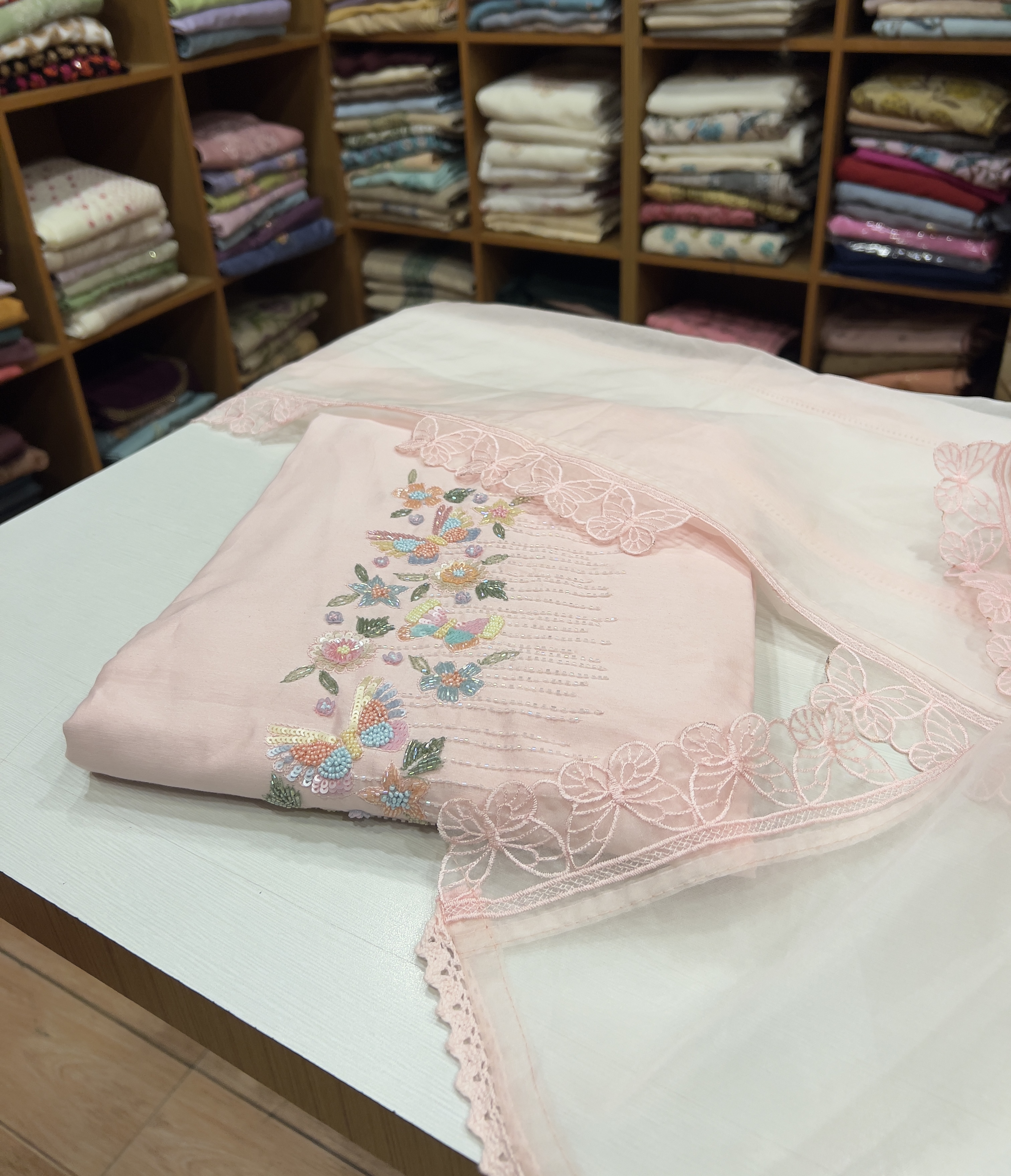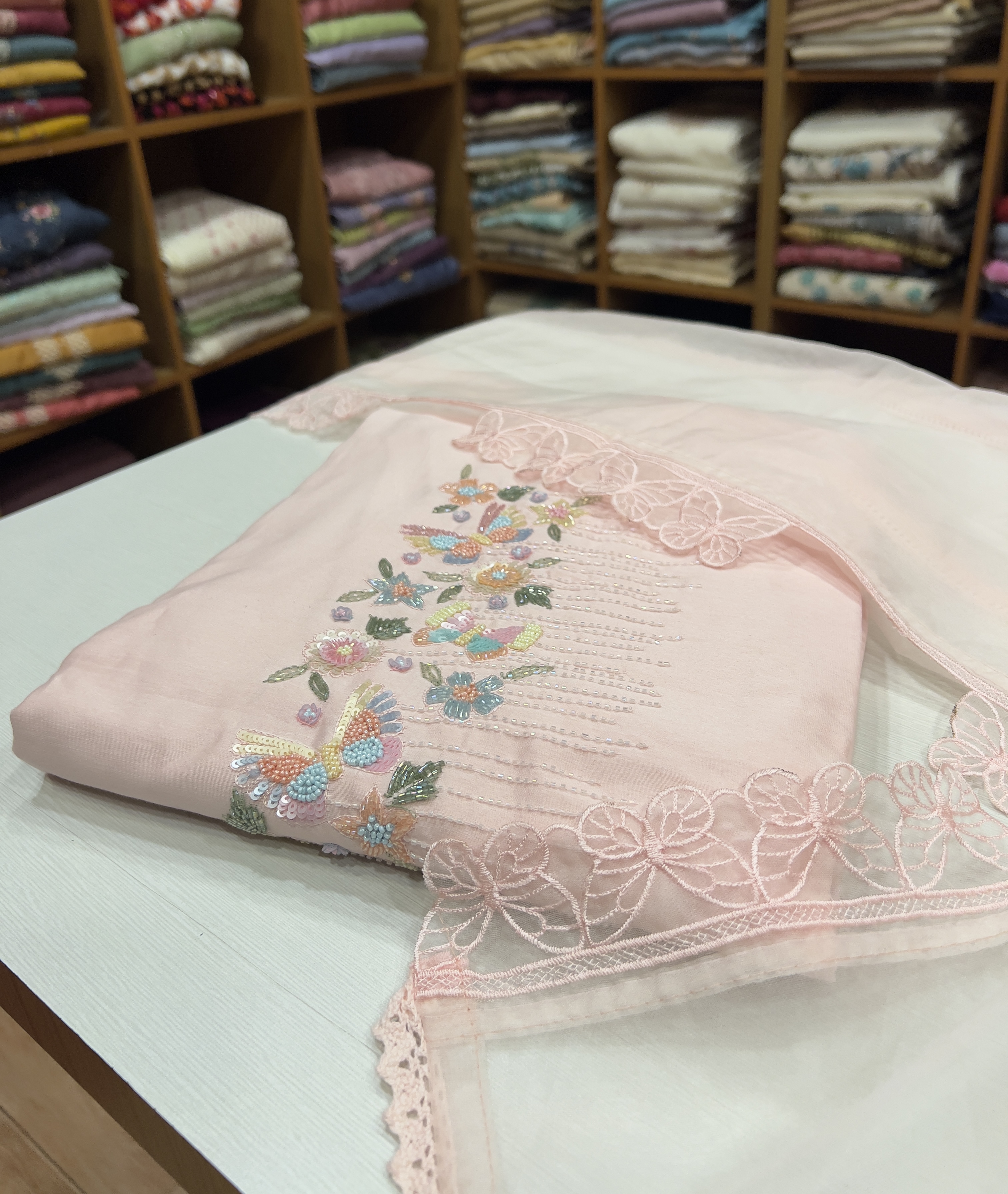 CHU34 Chanderi Top , Shantoon Bottom & Organza Dupatta
