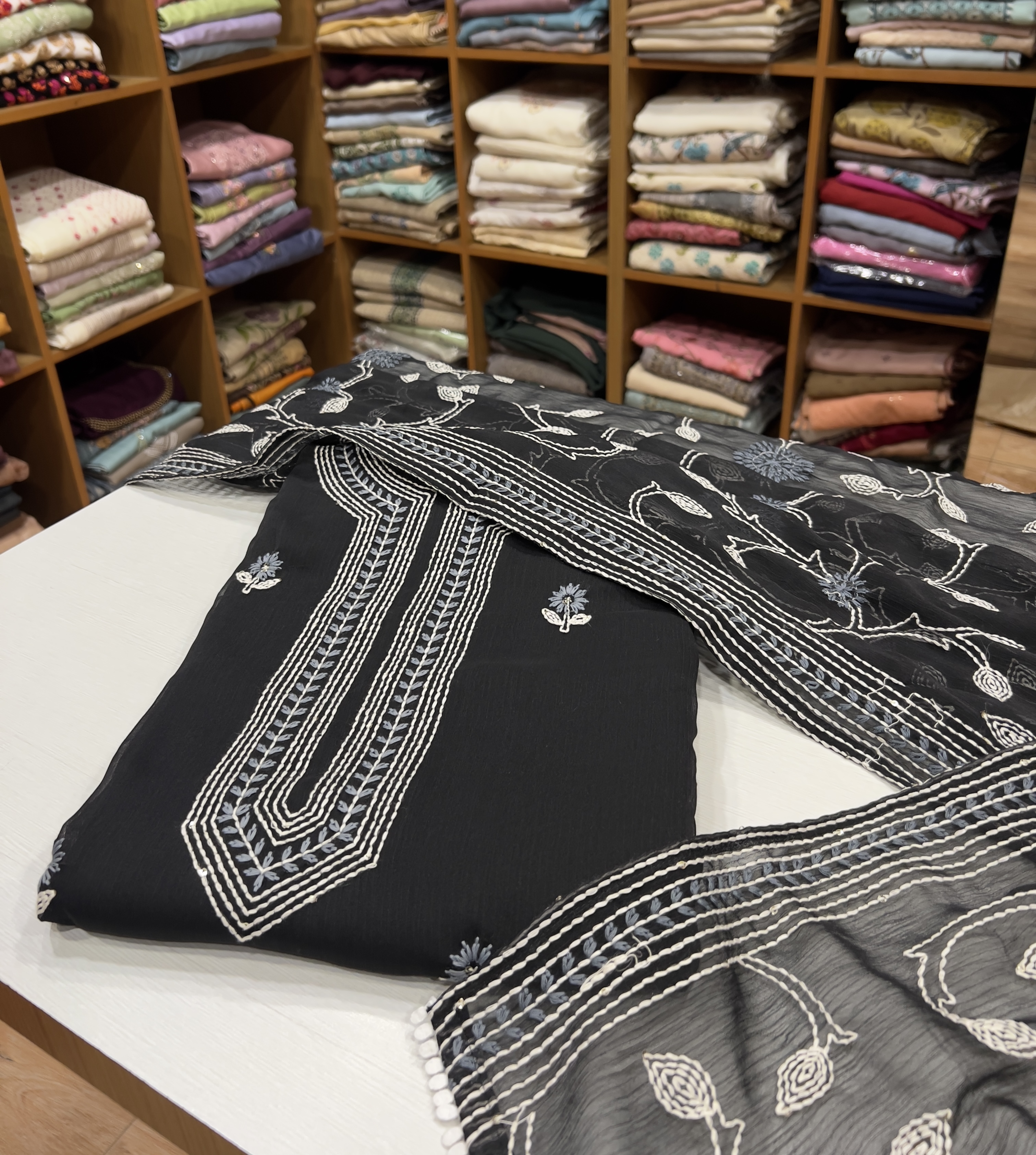 CHU35 Chiffon Top , Shantoon Bottom & Embroidered Chiffon Dupatta