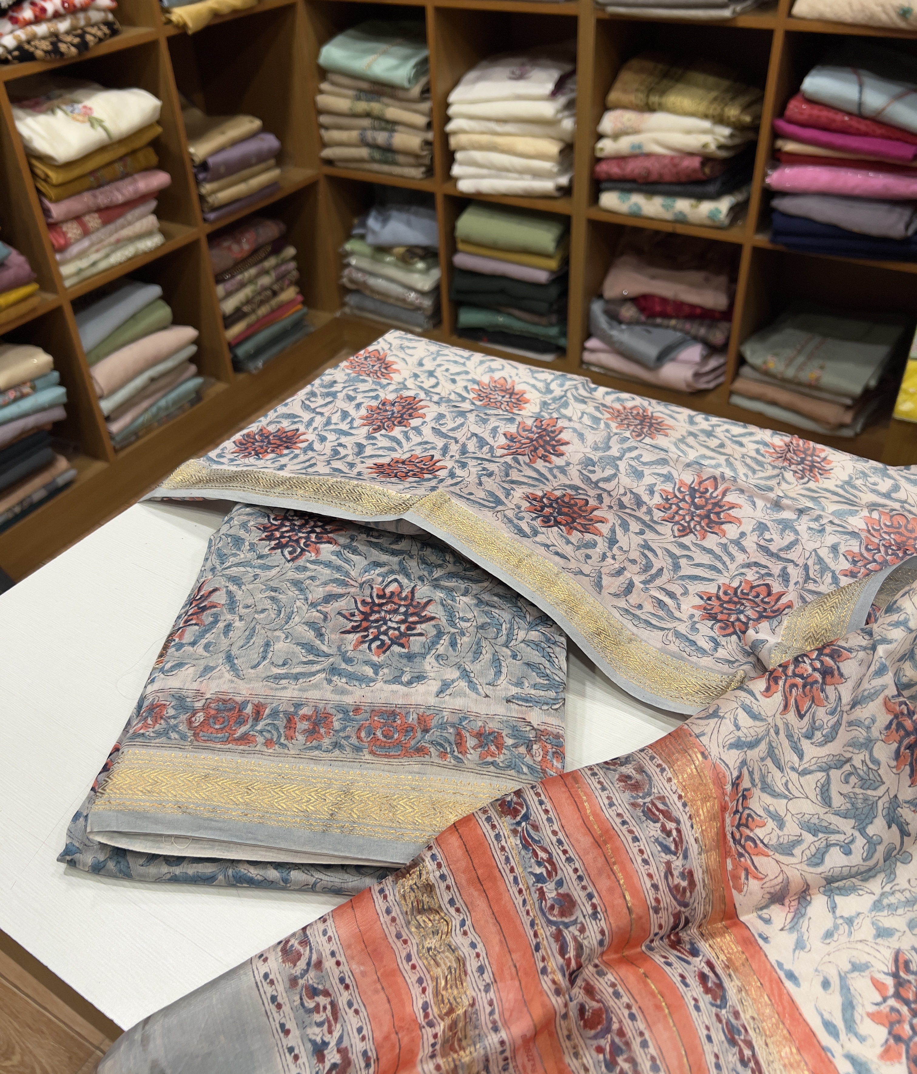 CHU37 Maheswari Silk Top , Printed Cotton Bottom & Maheswari Silk Dupatta - Copy 3