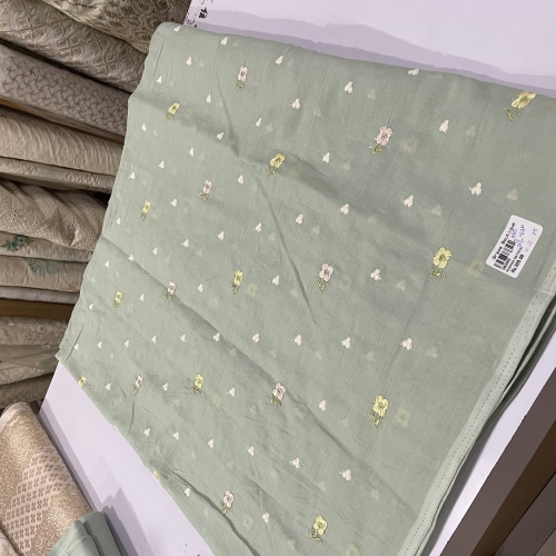 CUT - Sage Green Embroidered Mul Cotton Last Piece 2.75 Mtr