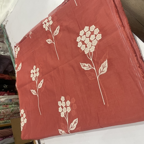 CUT - Embroidered Chanderi Brick Red Last Piece 3.50 Mtr