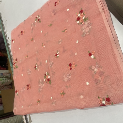 CUT - Embroidered Chanderi Dull Peach Last Piece 3.50 Mtr