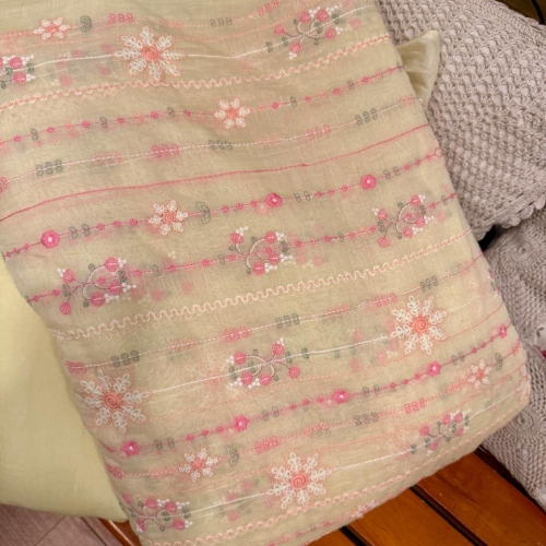FEMC2 - Embroidered Mul Chanderi (dupatta Fabric)yellow