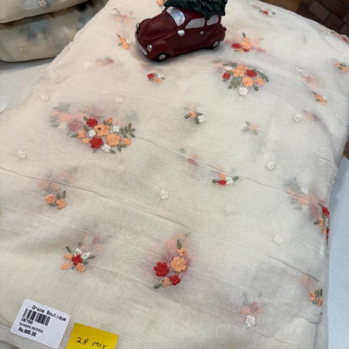 FAB123 Embroidered Fabric ( Meroon & Redish Meroon Embroidery )