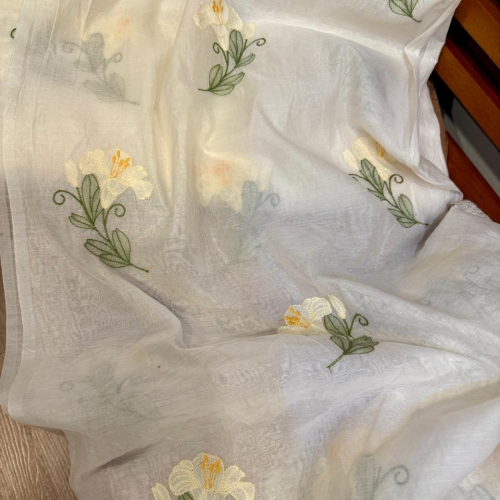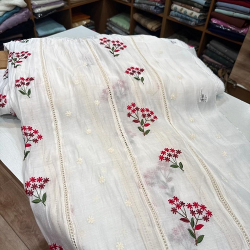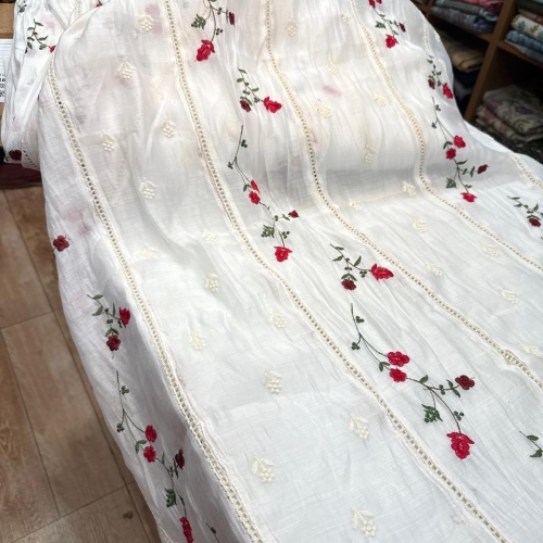 FWMC1 - Embroidered Mul Chanderi (WHITE)