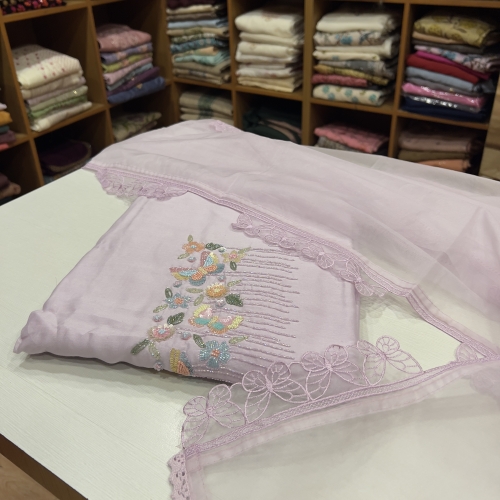 CHU34 Chanderi Top , Shantoon Bottom & Organza Dupatta