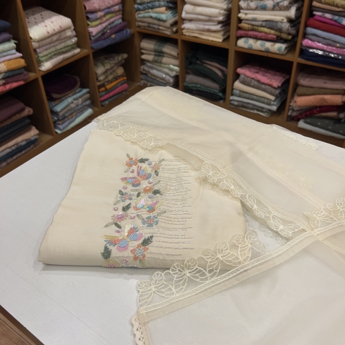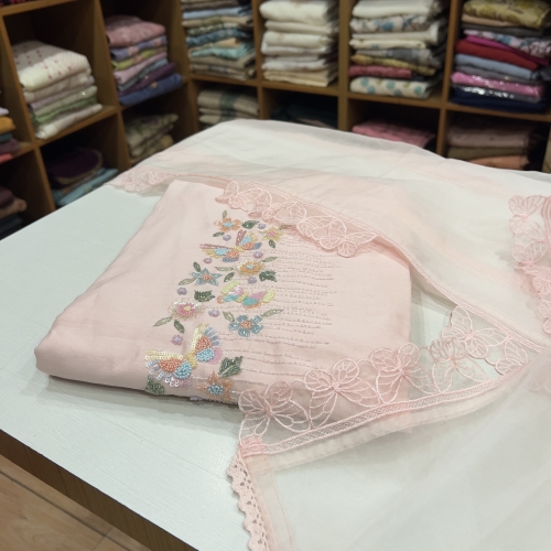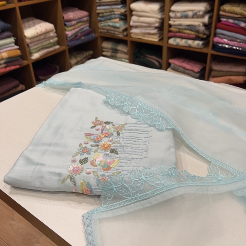 CHU35 Chiffon Top , Shantoon Bottom & Embroidered Chiffon Dupatta