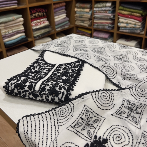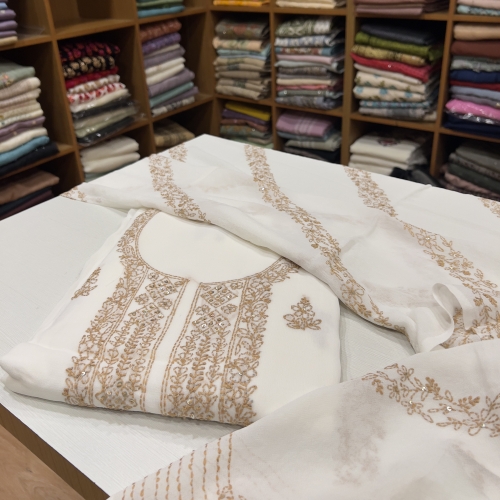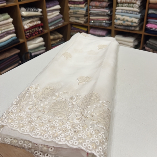 FAB346 Embroidered Dyeable Organza ( 3.50 Mtrs)