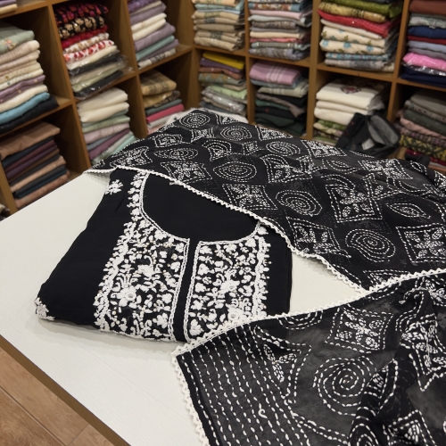 CHU3 Georgette Top With Embroidery, Same Color Shantoon Bottom & Georgette Embroidered Dupatta