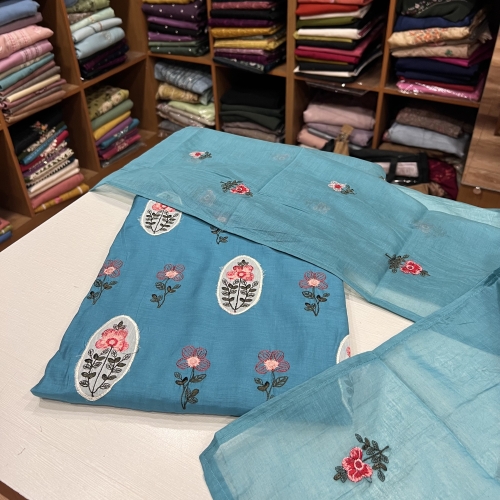 EST26 Semi Chanderi Patch Worked Top , Shantoon Bottom & Chanderi Dupatta - Copy 11