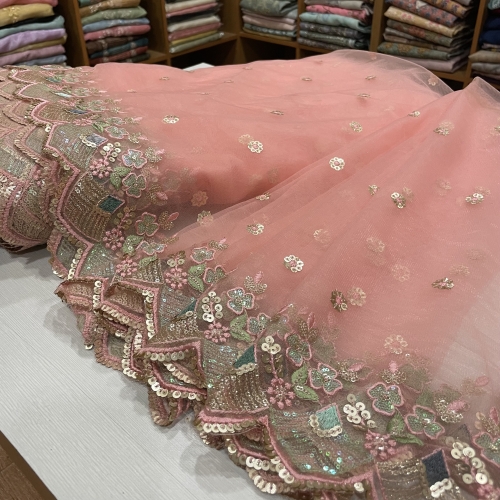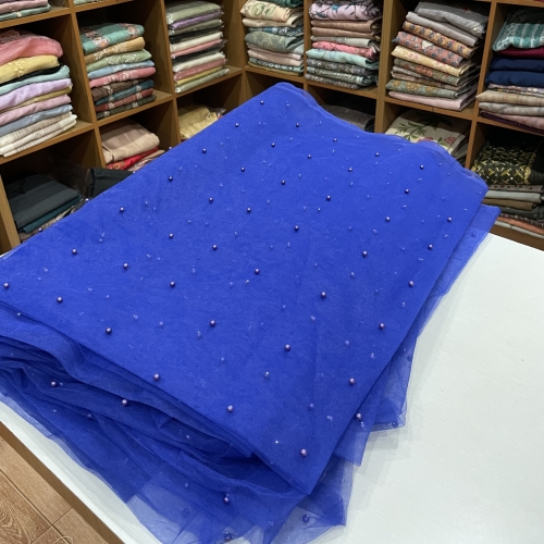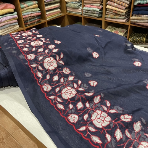 FAB185 Embroidered Soft Organza ( Navy Blue)