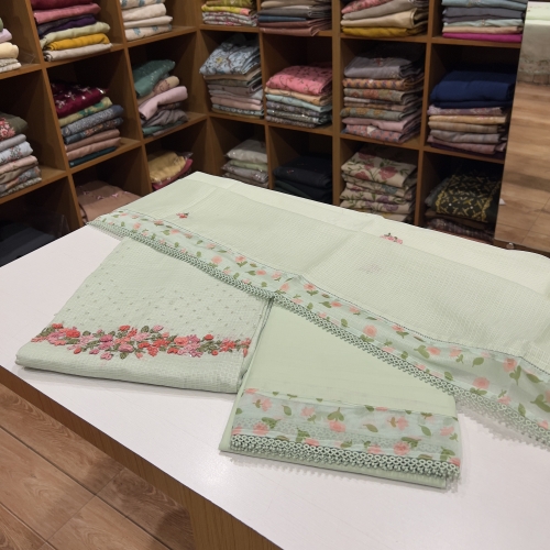 CH Linen Top ., Cotton Bottom & Chiffon Dupatta