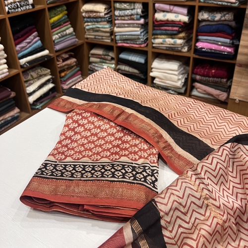 CHU5 Maheswari Silk Top , Cotton Bottom & Maheswari Silk Dupatta