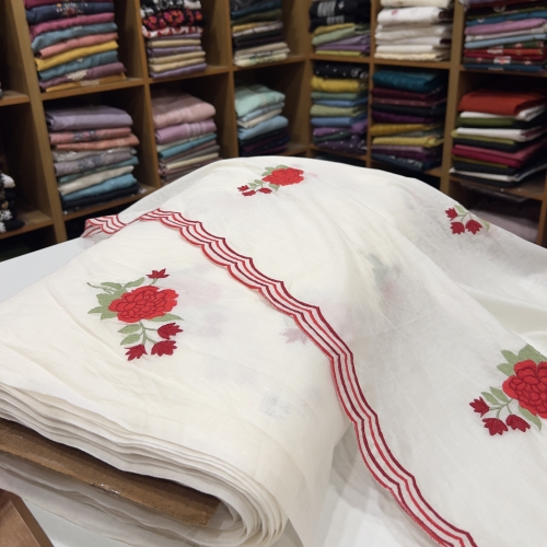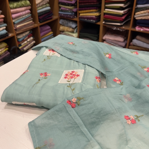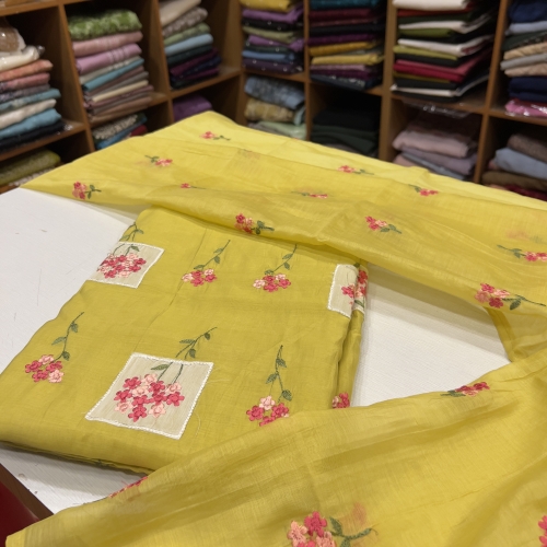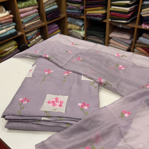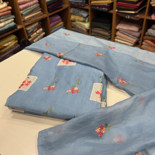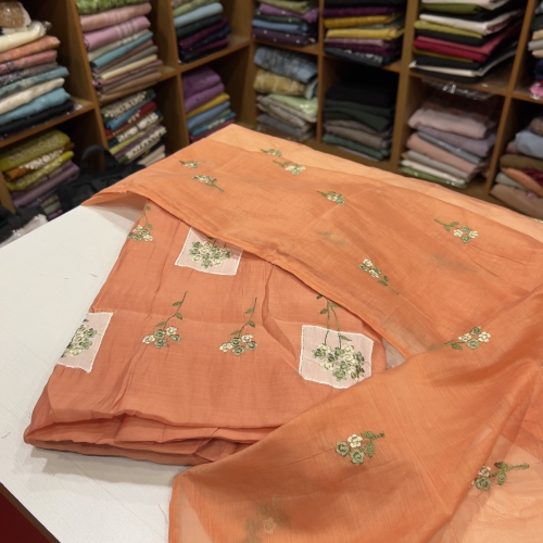 EST26 Semi Chanderi Patch Worked Top , Shantoon Bottom & Chanderi Dupatta