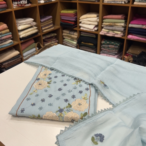 EST10 Mul Chanderi Top , Cotton Silk Bottom & Pure Tussar Silk Dupatta