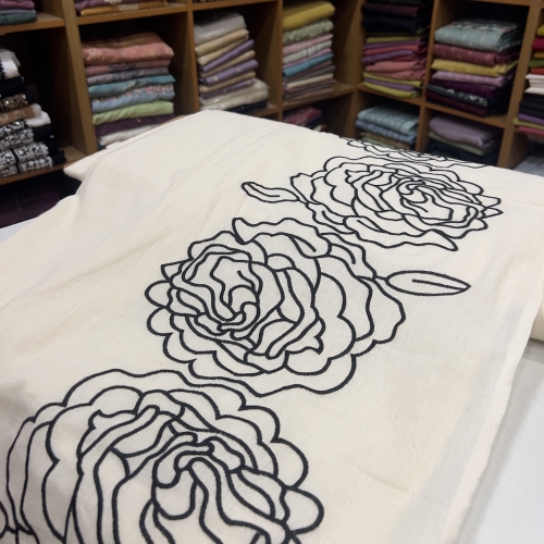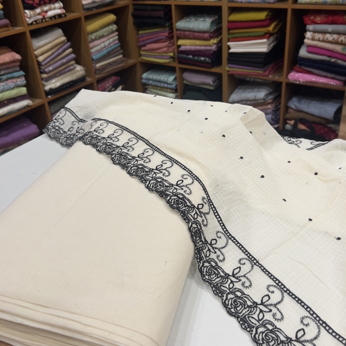 EST1 Embroidered Kora Cotton 2.5 Mtrs ( Cream Shade)