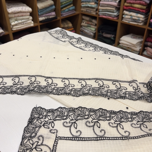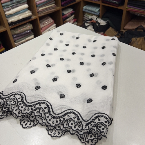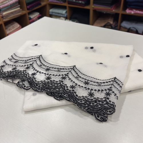 EST2 Embroidered Kotta Dupatta ( White & Black)