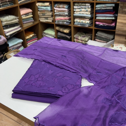 CHU1 Semi Silk Top , Shantoon Bottom & Organza Dupatta