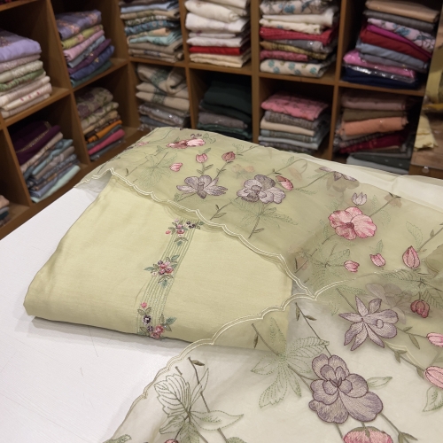 CHU28 Crushed Organza Top , Shantoon Bottom & Crushed Organza Dupatta