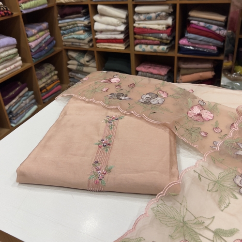 CHU30 Chanderi Top , Shantoon Bottom & Organza Dupatta